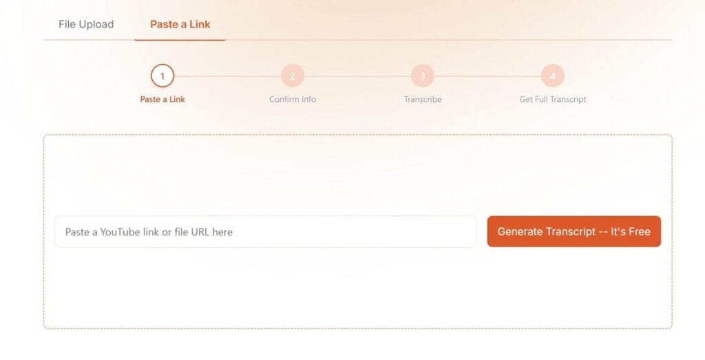 You can even paste a YouTube link directly to generate an instant transcript without downloading the video.